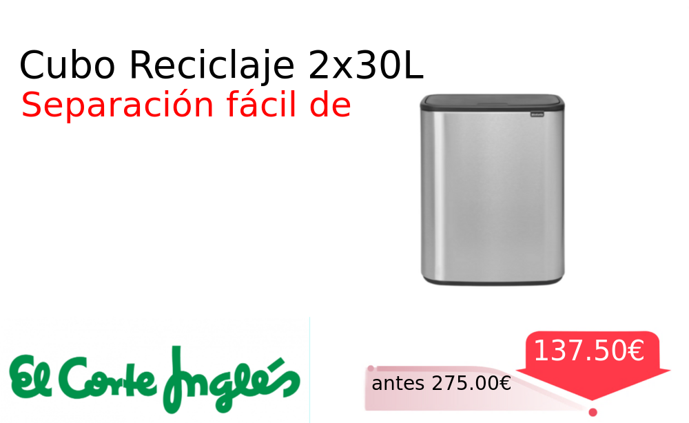 Mitad de precio✂️ Cubo Reciclaje 2x30L❗️🆕 #Elcorteingles 📛Precio Ya 137.50€❗️ (PVP: +275.00€) ✨Cubo de basura con dos compartimentos de 30 litros para facilitar el reciclaje Diseño elegante y funcional que se integra en cualquier cocina Apertura. cholloya.com/BRABANTIA_BO_TO