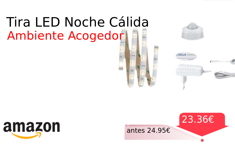 Buen Precio✨ Tira LED Noche Cálida❗️🆕 #Amazon 🇪🇸 📛Precio Ya 23.36€❗️ (PVP: +24.95€) ✨Tira LED cálida de 3000K para crear ambientes acogedores Ideal para iluminación decorativa nocturna con un suave brillo blanco y fácil instalación. cholloya.com/TIRA_LED_NOCHEC