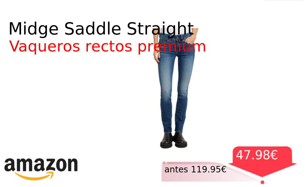 Mitad de precio✂️ Midge Saddle Straight❗️🆕 #Amazon 🇪🇸 📛Precio Ya 47.98€❗️ (PVP: +119.95€) ✨Vaqueros rectos de corte clásico para mujer con detalles premium en el diseño y una confección de alta calidad para un estilo duradero. cholloya.com/G_STAR_MIDGE