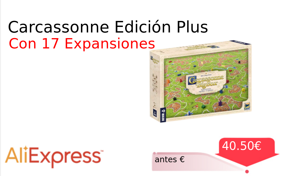 Buen Precio✨ Carcassonne Edición Plus❗️🆕 #AliExpress 📛Precio Ya 40.50€❗️ (PVP: +€) ✨Edición completa del clásico juego de colocación de losetas Incluye once expansiones principales y seis mini-expansiones para multiplicar la diversión y estrategia. cholloya.com/CARCASSONNE_PLU