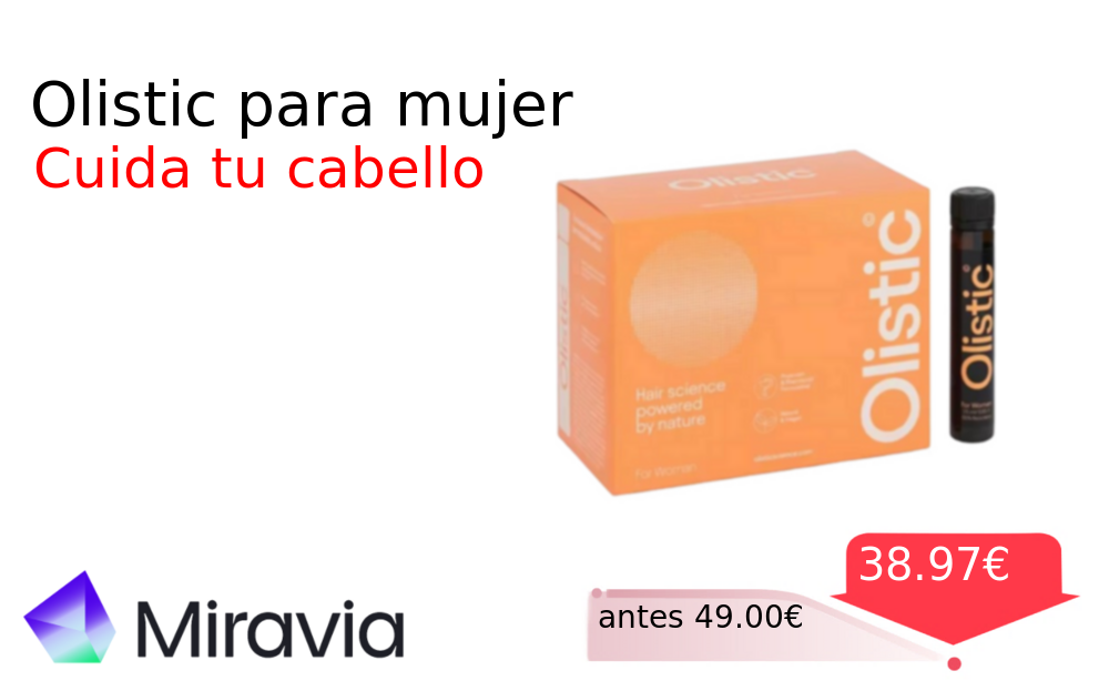 ¡Toma descuento!🤯 Olistic para mujer❗️🆕 #Miravia 📛Precio Ya 38.97€❗️ (PVP: +49.00€) ✨Una fórmula única compuesta por más de 30 principios activos naturales y veganos, respaldados por dermatólogos, farmacéuticos y botánicos cholloya.com/OLISTIC