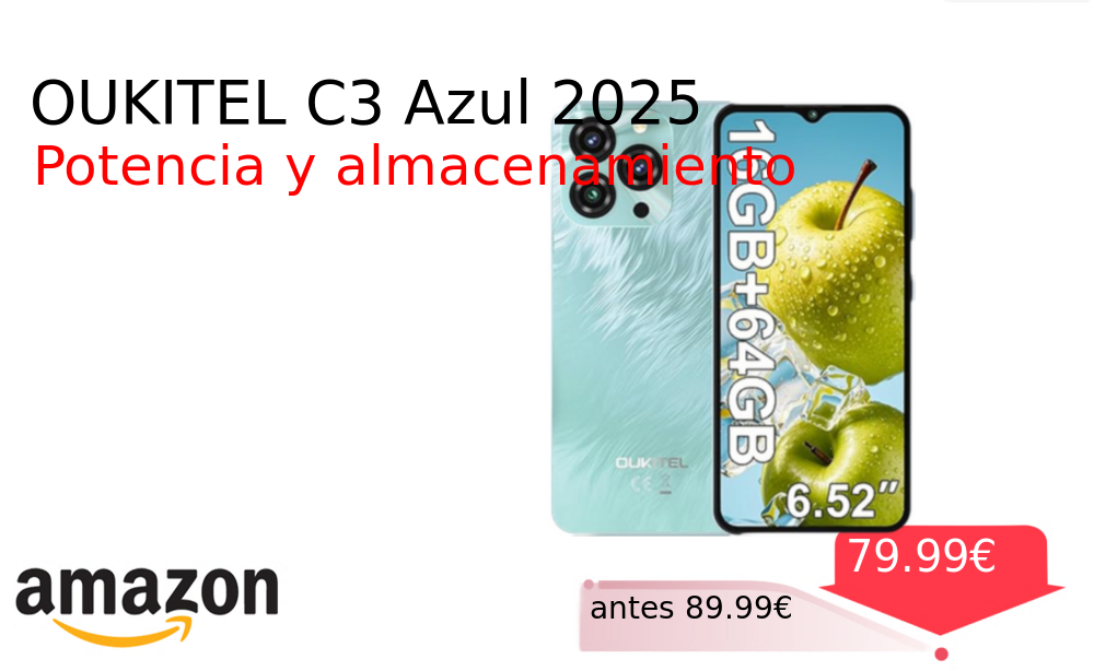 Buen Precio✨ OUKITEL C3 Azul 2025❗️🆕 #Amazon 🇪🇸 📛Precio Ya 79.99€❗️ (PVP: +89.99€) ✨Smartphone Android con pantalla amplia de 6 52 pulgadas y batería de larga duración Cámara dual y amplio almacenamiento expandible para tu día. cholloya.com/OUKITEL_C3_2025