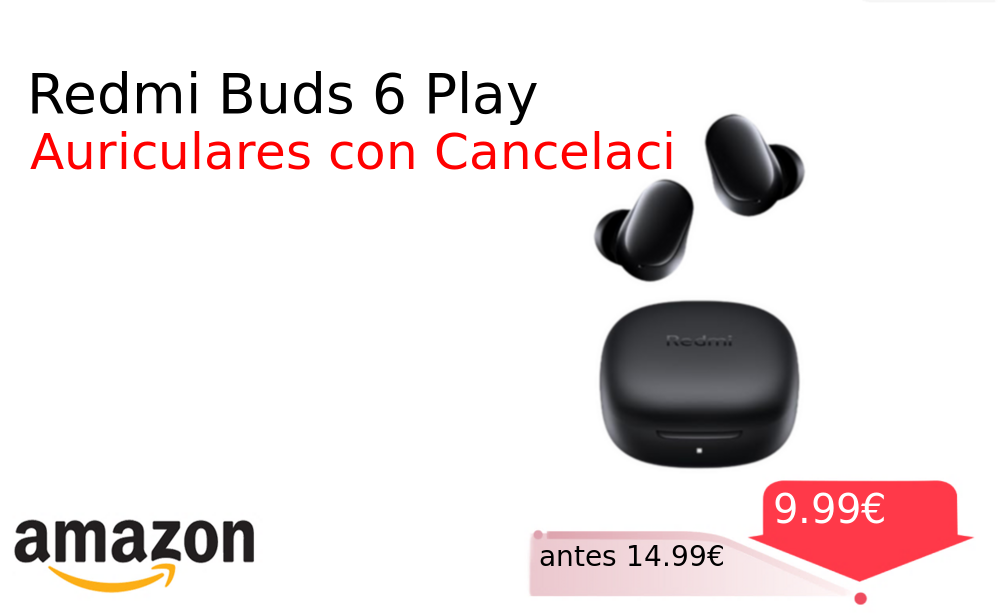 Más de un 30% 🚀 Redmi Buds 6 Play❗️🆕 #Amazon 🇪🇸 📛Precio Ya 9.99€❗️ (PVP: +14.99€) ✨Auriculares inalámbricos con cancelación de ruido y diseño ergonómico Ligeros y compactos para un ajuste cómodo ofrecen hasta treinta y seis horas de autonomía. cholloya.com/REDMI_BUDS_6_PL