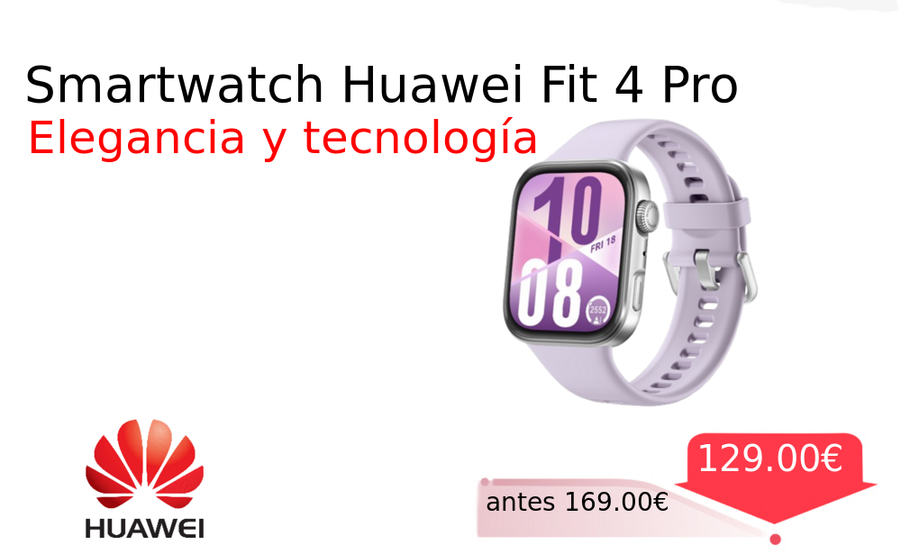 Buen Precio✨ Smartwatch Huawei Fit 4 Pro❗️🆕 #Huawei 📛Precio Ya 129.00€❗️ (PVP: +169.00€) ✨Smartwatch elegante con pantalla AMOLED vibrante y monitorización de salud avanzada Diseño premium y resistencia al agua para un estilo de vida activo. cholloya.com/HUAWEI_WATCH_FI