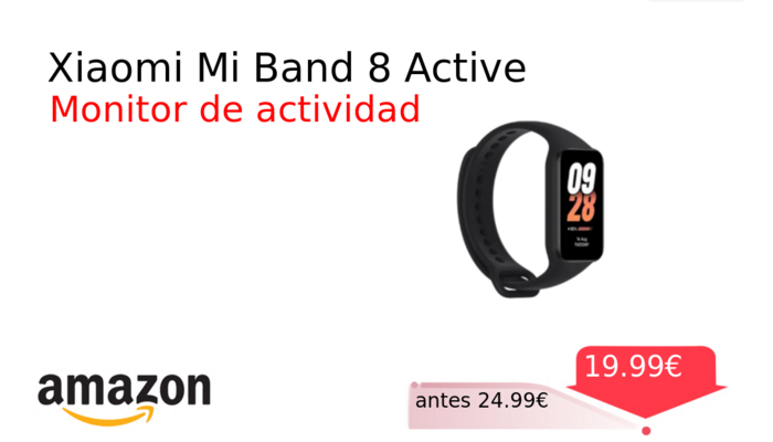Preciazo de oferta Xiaomi Mi Band 8 Active❗️🆕 #Miravia 📛Precio Ya 19.99€❗️ (PVP: +24.99€) ✨Xiaomi Smart Band 8 Active Versión Global. 1,47" Pantalla LCD. Monitorización durante todo el día de la frecuencia cardíaca, el sueño y el SpO2 cholloya.com/MIBAND8ACTIVE