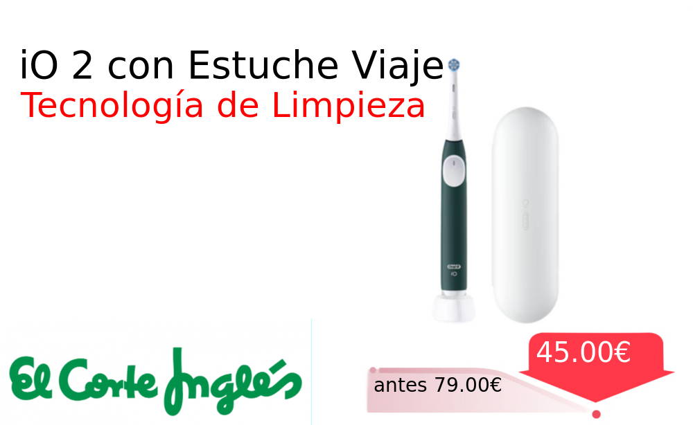 40% 📉 Vaya descuentazo‼‼ iO 2 con Estuche Viaje❗️🆕 #Elcorteingles 📛Precio Ya 45.00€❗️ (PVP: +79.00€) ✨Cepillo eléctrico con tecnología de limpieza avanzada para una higiene bucal superior Incluye práctico estuche de viaje para mantenerlo protegido. cholloya.com/ORALB_IO2_VIAJE