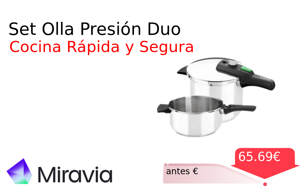 Buen Precio✨ Set Olla Presión Duo❗️🆕 #Miravia 📛Precio Ya 65.69€❗️ (PVP: +€) ✨Olla a presión rápida de acero inoxidable con dos tamaños Cocina tus platos de forma eficiente y segura en cualquier tipo de cocina incluida. cholloya.com/MONIX_QUICK_DUO