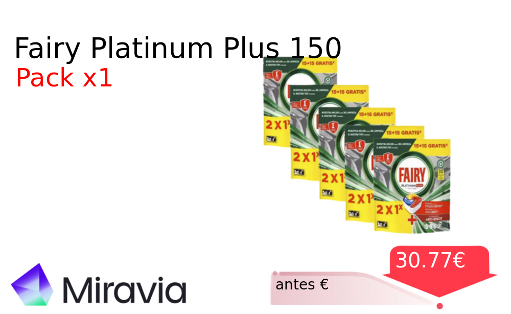 Buen Precio✨ Fairy Platinum Plus 150❗️🆕 #Miravia 📛Precio Ya 30.77€❗️ (PVP: +€) ✨Pastillas todo en uno para lavavajillas con limpieza profunda y brillo extra Fragancia a limón fresca Pack ahorro doble con ciento cincuenta cápsulas. cholloya.com/FAIRY_PLATINUM_