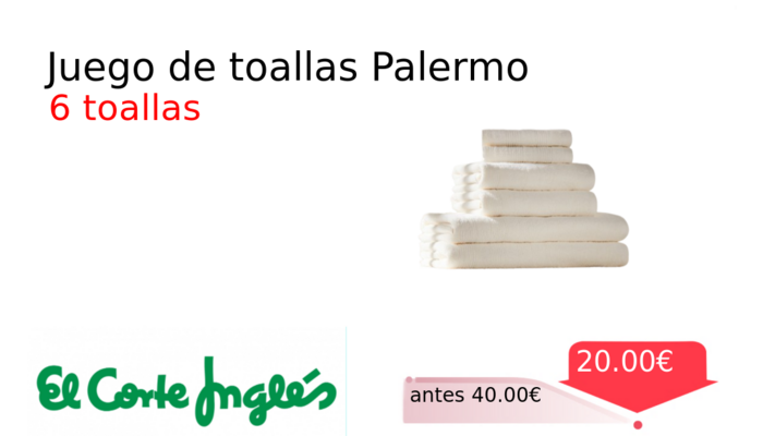 ¡¡Ojo a la ganga!! 📛 Juego de toallas Palermo❗️🆕 #Elcorteingles 📛Precio Ya 20.00€❗️ (PVP: +40.00€) ✨El juego de 6 toallas de algodón Palermo Basics de El Corte Inglés, con un gramaje de 450 gr/m², ofrece suavidad y absorción excepcionales. Perfectas para añadir un toque de lujo a tu baño. cholloya.com/6PALERMO
