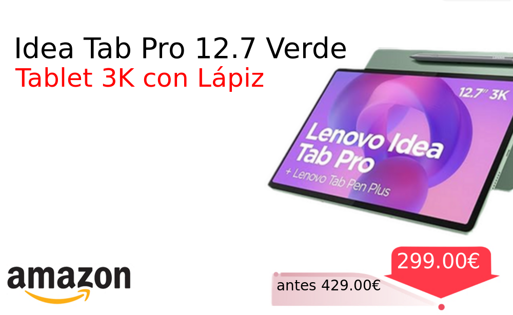 Más de un 30% 🚀 Idea Tab Pro 12.7 Verde❗️🆕 #Amazon 🇪🇸 📛Precio Ya 299.00€❗️ (PVP: +429.00€) ✨Tablet Lenovo de 12 7 pulgadas con pantalla 3K y 144 Hz Incluye lápiz digital procesador MediaTek Dimensity 8300 y 8 GB de RAM. cholloya.com/LENOVO_IDEA_TAB