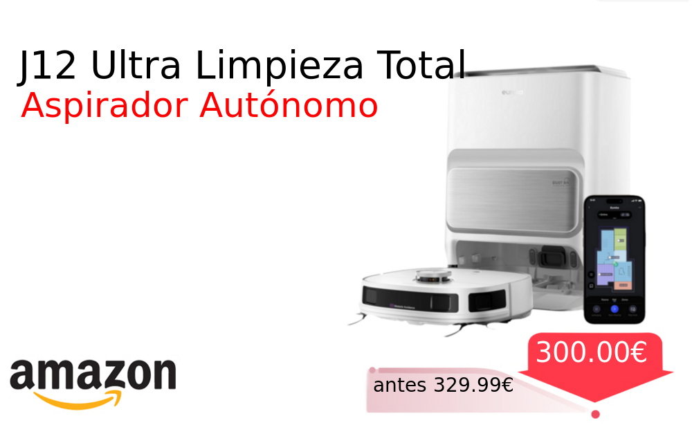 Buen Precio✨ J12 Ultra Limpieza Total❗️🆕 #Amazon 🇪🇸 📛Precio Ya 300.00€❗️ (PVP: +329.99€) ✨Robot aspirador y fregasuelos con vaciado automático lavado y secado Navegación LiDAR AI 3D 5000Pa succión 180 minutos autonomía control WiFi app. cholloya.com/EUREKA_J12_ULTR