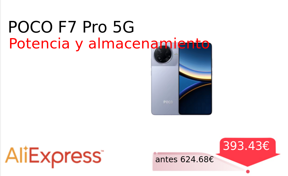 Más de un 30% 🚀 POCO F7 Pro 5G❗️🆕 #AliExpress 📛Precio Ya 393.43€❗️ (PVP: +624.68€) ✨Smartphone con conectividad 5G y amplio almacenamiento de 512GB Incluye NFC y 12GB RAM para un rendimiento excepcional en multitarea y juegos móviles. cholloya.com/POCO_F7_PRO_5G