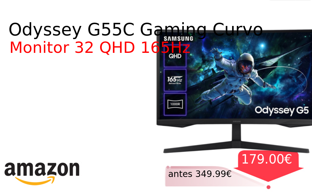 40% 📉 Vaya descuentazo‼‼ Odyssey G55C Gaming Curvo❗️🆕 #Amazon 🇪🇸 📛Precio Ya 179.00€❗️ (PVP: +349.99€) ✨Monitor gaming curvo Samsung de 32 pulgadas con resolución QHD y tasa de refresco de 165Hz Tecnología AMD FreeSync y tiempo de respuesta ultrarrápido. cholloya.com/SAMSUNG_ODYSSEY