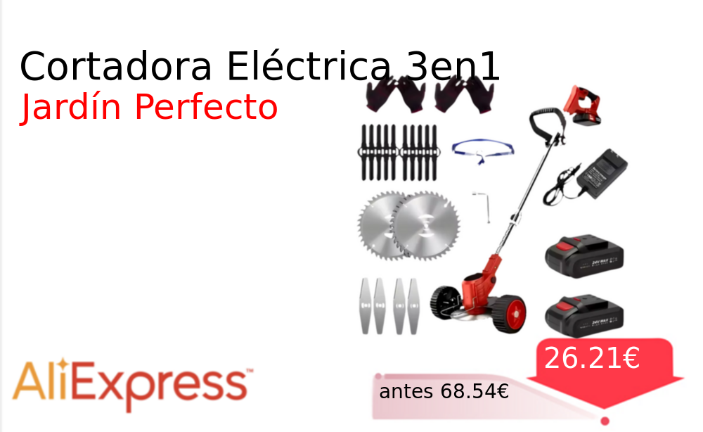 Mitad de precio✂️ Cortadora Eléctrica 3en1❗️🆕 #AliExpress 📛Precio Ya 26.21€❗️ (PVP: +68.54€) ✨Herramienta eléctrica versátil para jardinería con tres funciones integradas Incluye cortadora de césped desbrozadora y cortabordes Funciona con batería recargable para máxima movilidad. cholloya.com/CORTADORA_3EN1