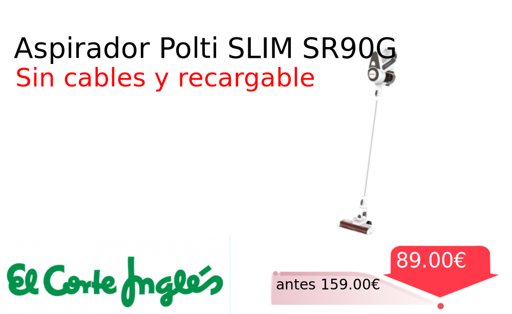 40% 📉 Vaya descuentazo‼‼ Aspirador Polti SLIM SR90G❗️🆕 #Elcorteingles 📛Precio Ya 89.00€❗️ (PVP: +159.00€) ✨Aspirador vertical recargable sin cables con diseño dos en uno Ligero y potente para limpieza rápida en cualquier superficie de tu hogar con máxima. cholloya.com/POLTI_SLIM_SR90