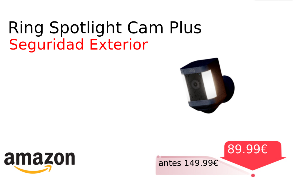 40% 📉 Vaya descuentazo‼‼ Ring Spotlight Cam Plus❗️🆕 #Amazon 🇪🇸 📛Precio Ya 89.99€❗️ (PVP: +149.99€) ✨Cámara exterior wifi con visión nocturna focos LED y comunicación bidireccional Vídeo HD 1080p y prueba gratuita de Ring Home incluida. cholloya.com/RING_SPOTLIGHTC