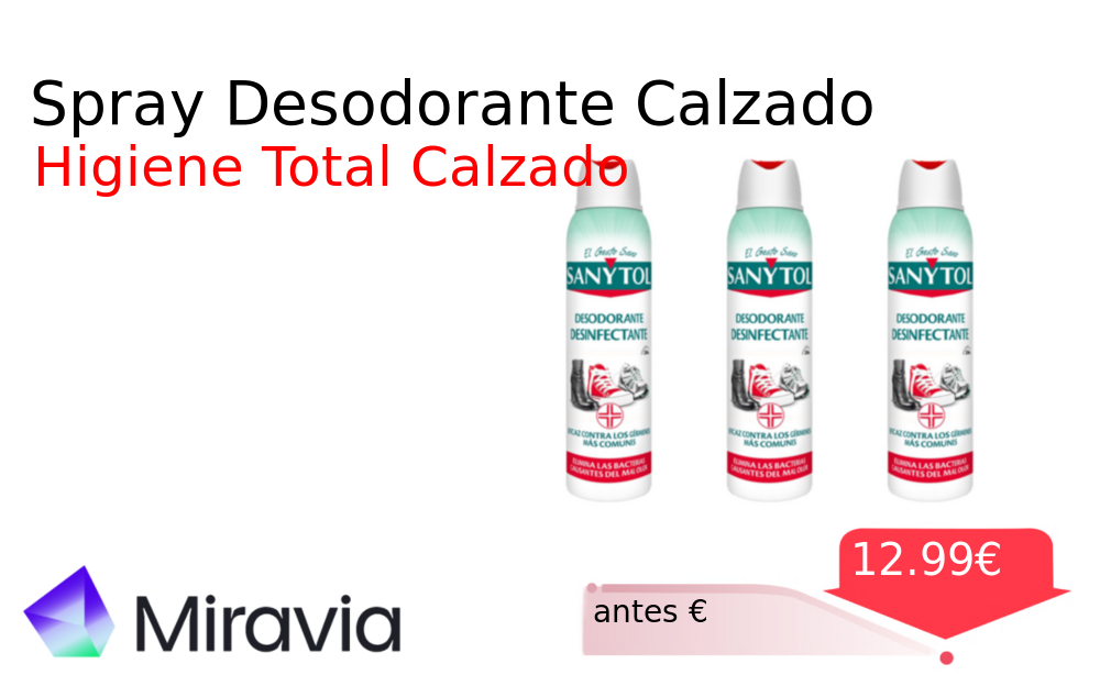 Buen Precio✨ Spray Desodorante Calzado❗️🆕 #Miravia 📛Precio Ya 12.99€❗️ (PVP: +€) ✨Mantén tu calzado fresco y protegido con este spray desodorante desinfectante Fácil aplicación para eliminar olores y garantizar higiene completa en zapatos. cholloya.com/SANYTOL_SPRAY_C