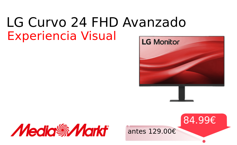 Más de un 30% 🚀 LG Curvo 24 FHD Avanzado❗️🆕 #MediaMarkt 📛Precio Ya 84.99€❗️ (PVP: +129.00€) ✨Monitor curvo LG 24 Full-HD con 100 Hz y panel VA Tecnología USB-C multifunción diseño sin bordes y funciones avanzadas para máxima comodidad visual. cholloya.com/LG_24U421A_B