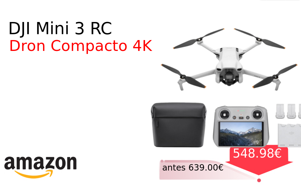 Buen Precio✨ DJI Mini 3 RC❗️🆕 #Amazon 🇪🇸 📛Precio Ya 548.98€❗️ (PVP: +639.00€) ✨Dron ligero y plegable con cámara 4K HDR tiempo de vuelo extendido y grabación vertical Funciones inteligentes para capturar imágenes espectaculares desde el aire. cholloya.com/DJI_MINI3_RC