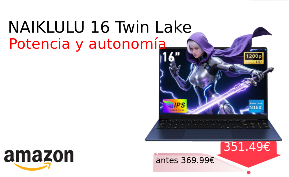 Buen Precio✨ NAIKLULU 16 Twin Lake❗️🆕 #Amazon 🇪🇸 📛Precio Ya 351.49€❗️ (PVP: +369.99€) ✨Portátil de 16 pulgadas con procesador N150 16GB RAM y 1TB SSD Teclado retroiluminado completo y batería de larga duración para máxima productividad móvil. cholloya.com/NAIKLULU_TWIN_L