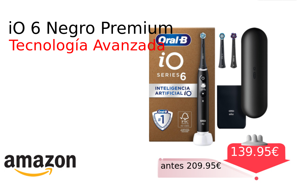 Más de un 30% 🚀 iO 6 Negro Premium❗️🆕 #Amazon 🇪🇸 📛Precio Ya 139.95€❗️ (PVP: +209.95€) ✨Cepillo eléctrico negro con tecnología avanzada de limpieza Incluye tres cabezales de recambio y estuche de viaje para máxima comodidad. cholloya.com/ORALB_IO6_NEGRO
