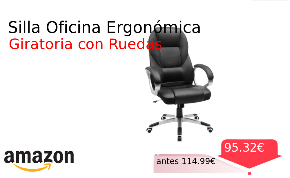 Buen Precio✨ Silla Oficina Ergonómica❗️🆕 #Amazon 🇪🇸 📛Precio Ya 95.32€❗️ (PVP: +114.99€) ✨Silla giratoria ergonómica para oficina y estudio Fabricada en PU de calidad con ruedas suaves Diseño negro elegante y funcional para largas jornadas. cholloya.com/SILLA_OFICINA_E
