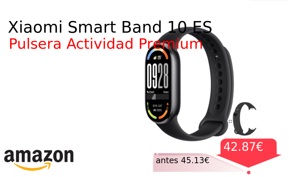 Buen Precio✨ Xiaomi Smart Band 10 ES❗️🆕 #Amazon 🇪🇸 📛Precio Ya 42.87€❗️ (PVP: +45.13€) ✨Pulsera de actividad con pantalla AMOLED de 1 72 pulgadas y tasa de refresco 60 Hz Autonomía de hasta 21 días resistencia 5ATM. cholloya.com/XIAOMI_BAND_10
