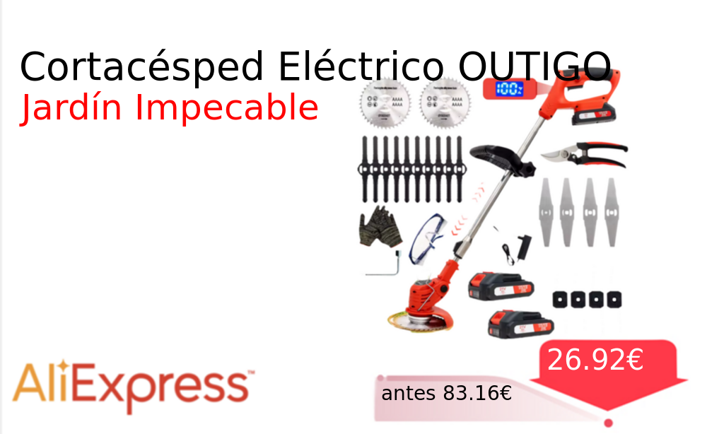Mitad de precio✂️ Cortacésped Eléctrico OUTIGO❗️🆕 #AliExpress 📛Precio Ya 26.92€❗️ (PVP: +83.16€) ✨Desbrozadora eléctrica ligera con dos baterías recargables y cuatro cuchillas intercambiables para mantener jardines y céspedes perfectamente cuidados sin esfuerzo. cholloya.com/OUTIGO_DESBROZA
