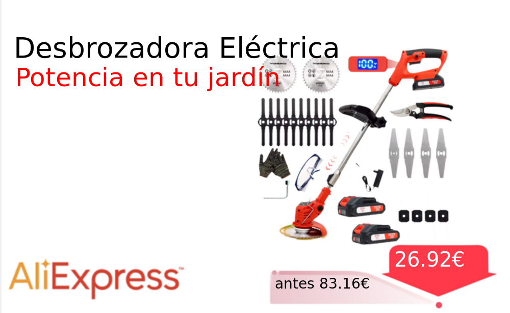 Mitad de precio✂️ Desbrozadora Eléctrica❗️🆕 #AliExpress 📛Precio Ya 26.92€❗️ (PVP: +83.16€) ✨Desbrozadora eléctrica ligera con dos baterías intercambiables y cuatro cuchillas versátiles para mantener jardines y céspedes perfectamente cuidados con diseno innovador y funcional. cholloya.com/OUTIGO_DESBROZA