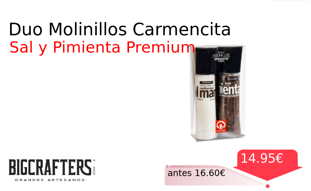 Buen Precio✨ Duo Molinillos Carmencita❗️🆕 #BigCrafters 📛Precio Ya 14.95€❗️ (PVP: +16.60€) ✨Molinillos de sal marina y pimienta negra Carmencita Calidad premium para realzar tus platos Aroma intenso y textura perfecta en cada molienda. cholloya.com/CARMENCITA_MOLI