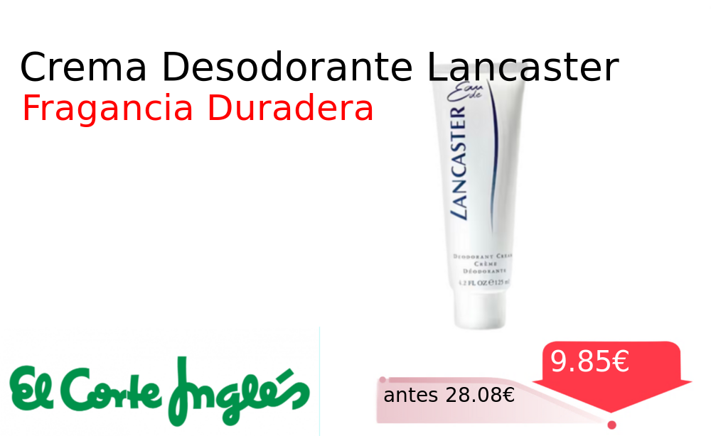 Mitad de precio✂️ Crema Desodorante Lancaster❗️🆕 #Elcorteingles 📛Precio Ya 9.85€❗️ (PVP: +28.08€) ✨Desodorante en crema Lancaster con suave textura y protección duradera Fragancia elegante que cuida tu piel durante todo el día de forma eficaz. cholloya.com/DESODORANTE_CRE
