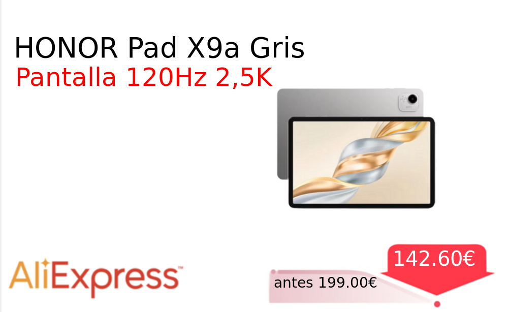 Buen Precio✨ HONOR Pad X9a Gris❗️🆕 #AliExpress 📛Precio Ya 142.60€❗️ (PVP: +199.00€) ✨Tableta con pantalla Fullview de 11 5 pulgadas 120Hz 2 5K Cuerpo metálico delgado y gran capacidad de almacenamiento para máxima productividad y entretenimiento. cholloya.com/HONOR_PAD_X9A