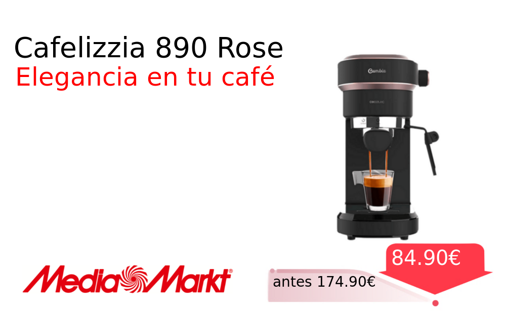 Mitad de precio✂️ Cafelizzia 890 Rose❗️🆕 #MediaMarkt 📛Precio Ya 84.90€❗️ (PVP: +174.90€) ✨Cafetera espresso compacta con diseño elegante en negro Funcionalidad profesional de 20 bares para amantes del café Depósito de 1 2 litros y sistema. cholloya.com/CECOTEC_CAFELIZ