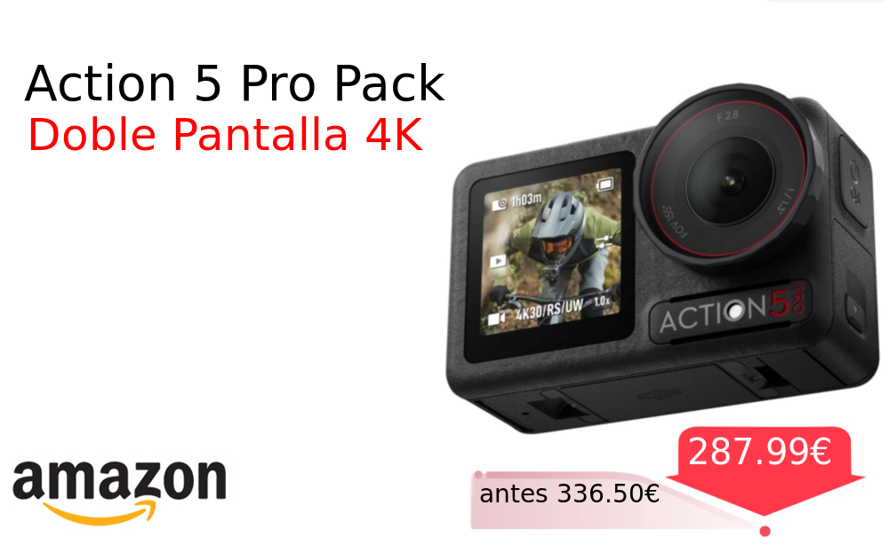Buen Precio✨ Action 5 Pro Pack❗️🆕 #Amazon 🇪🇸 📛Precio Ya 287.99€❗️ (PVP: +336.50€) ✨Cámara deportiva con sensor avanzado grabación en 4K a 120 fps y seguimiento automático Estabilización profesional y doble pantalla táctil para contenido dinámico. cholloya.com/OSMO_ACTION_5_P