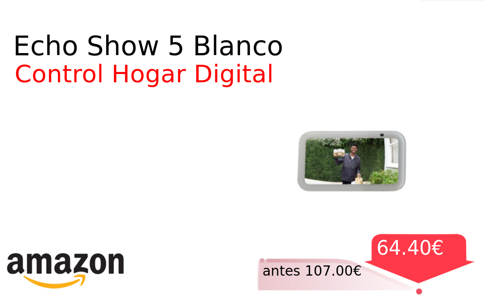 Más de un 30% 🚀 Echo Show 5 Blanco❗️🆕 #Amazon 🇪🇸 📛Precio Ya 64.40€❗️ (PVP: +107.00€) ✨Pantalla inteligente con Alexa para gestionar tu hogar digital Controla dispositivos reproduce contenido y realiza videollamadas con calidad premium con tecnologia de imagen avanzada. cholloya.com/ECHO_SHOW_5