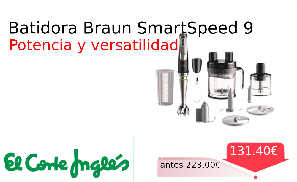 40% 📉 Vaya descuentazo‼‼ Batidora Braun SmartSpeed 9❗️🆕 #Elcorteingles 📛Precio Ya 131.40€❗️ (PVP: +223.00€) ✨Batidora de mano Braun con tecnología SmartSpeed avanzado Potente motor y accesorios versátiles para preparar sopas salsas y batidos con textura perfecta en segundos. cholloya.com/BRAUN_MULTIQUIC