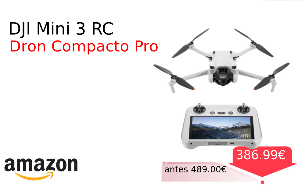Buen Precio✨ DJI Mini 3 RC❗️🆕 #Amazon 🇪🇸 📛Precio Ya 386.99€❗️ (PVP: +489.00€) ✨Dron mini plegable con mando incluido cámara 4K HDR y grabación vertical Tiempo de vuelo extendido y funciones inteligentes para capturar momentos únicos desde. cholloya.com/DJI_MINI3_RC