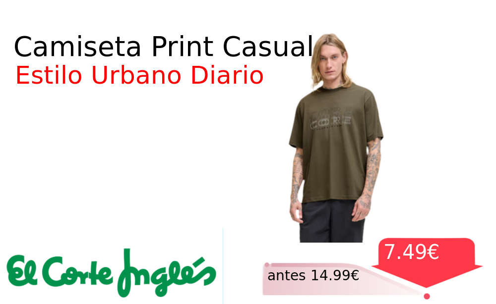 Mitad de precio✂️ Camiseta Print Casual❗️🆕 #Elcorteingles 📛Precio Ya 7.49€❗️ (PVP: +14.99€) ✨Camiseta básica de manga corta con diseño estampado en el frente Ideal para looks casuales diarios Calidad Jack Jones en algodón suave. cholloya.com/JACK_JONES_PRIN