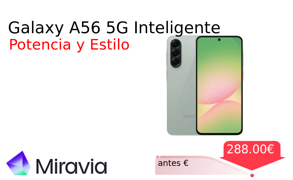Buen Precio✨ Galaxy A56 5G Inteligente❗️🆕 #Miravia 📛Precio Ya 288.00€❗️ (PVP: +€) ✨Smartphone Samsung con pantalla Super AMOLED de 6 7 pulgadas y tasa de refresco 120Hz Cámara triple de 50MP batería de larga duración. cholloya.com/SAMSUNG_A56_5G
