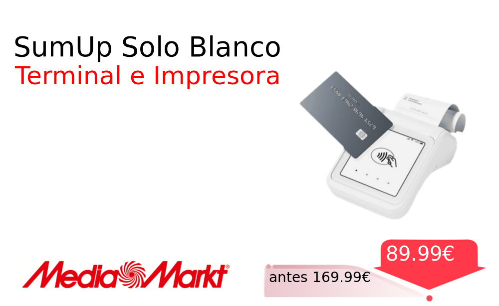 40% 📉 Vaya descuentazo‼‼ SumUp Solo Blanco❗️🆕 #MediaMarkt 📛Precio Ya 89.99€❗️ (PVP: +169.99€) ✨Terminal de pago con impresora integrada para cobros con tarjeta y contactless Emite recibos al instante diseño compacto blanco ideal para negocios móviles. cholloya.com/SUMUP_SOLO_BLAN