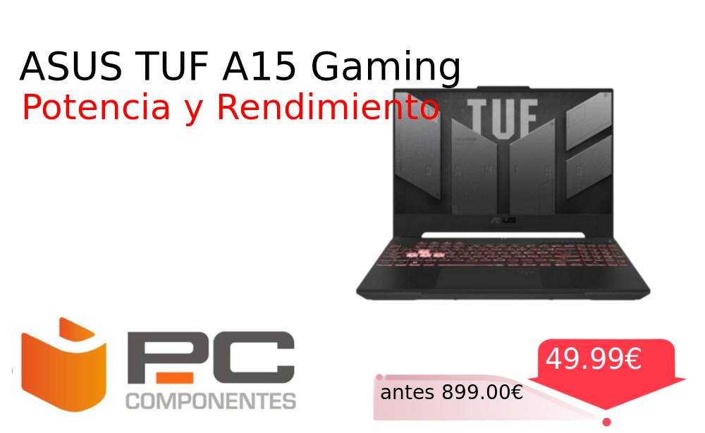 Mitad de precio✂️ ASUS TUF A15 Gaming❗️🆕 #PcComponentes 📛Precio Ya 49.99€❗️ (PVP: +899.00€) ✨Portátil gaming con procesador AMD Ryzen 7 y tarjeta gráfica RTX 4050 Memoria RAM de 16 GB y almacenamiento SSD rápido Pantalla de 15. cholloya.com/ASUS_TUF_A15