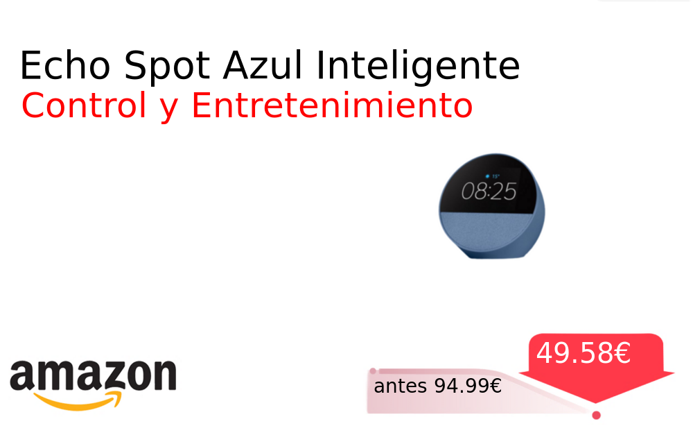 40% 📉 Vaya descuentazo‼‼ Echo Spot Azul Inteligente❗️🆕 #Amazon 🇪🇸 📛Precio Ya 49.58€❗️ (PVP: +94.99€) ✨Despertador inteligente con Alexa integrada y sonido premium Pantalla compacta para controlar tu hogar y disfrutar de contenido multimedia con claridad. cholloya.com/ECHO_SPOT_AZUL