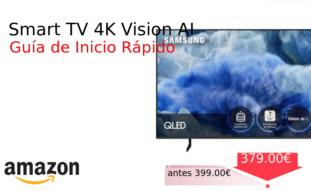 Buen Precio✨ Smart TV 4K Vision AI❗️🆕 #Amazon 🇪🇸 📛Precio Ya 379.00€❗️ (PVP: +399.00€) ✨Televisor inteligente con pantalla QLED 4K de 43 pulgadas Tecnología Vision AI y Quantum Dot para colores puros y un realismo excepcional en cada. cholloya.com/TV_QLED_4K_AI