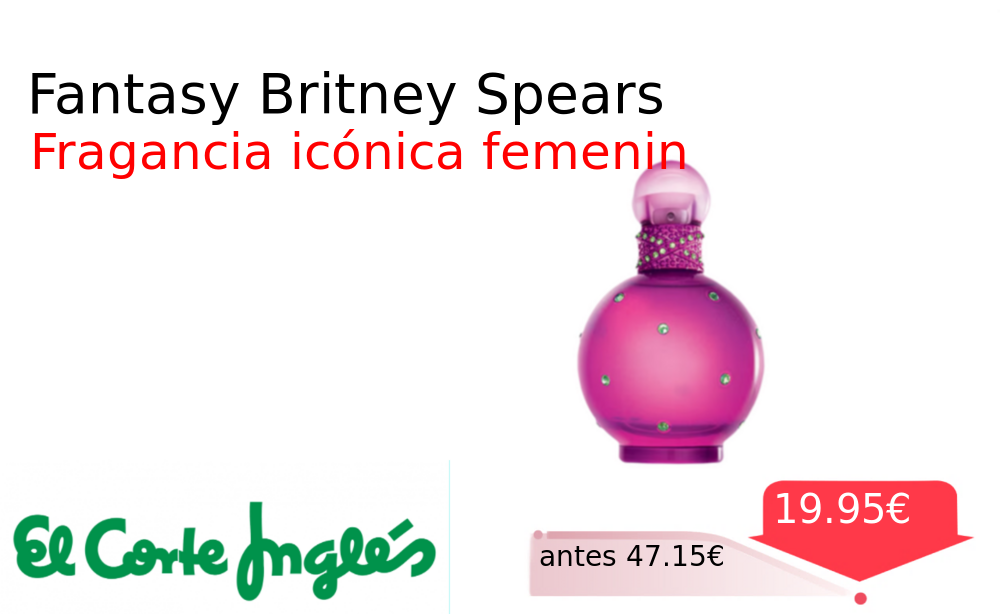 Mitad de precio✂️ Fantasy Britney Spears❗️🆕 #Elcorteingles 📛Precio Ya 19.95€❗️ (PVP: +47.15€) ✨Fragancia femenina icónica con notas frutales y florales Ideal para ocasiones especiales deja un rastro seductor y duradero con diseno innovador y funcional. cholloya.com/BRITNEY_FANTASY