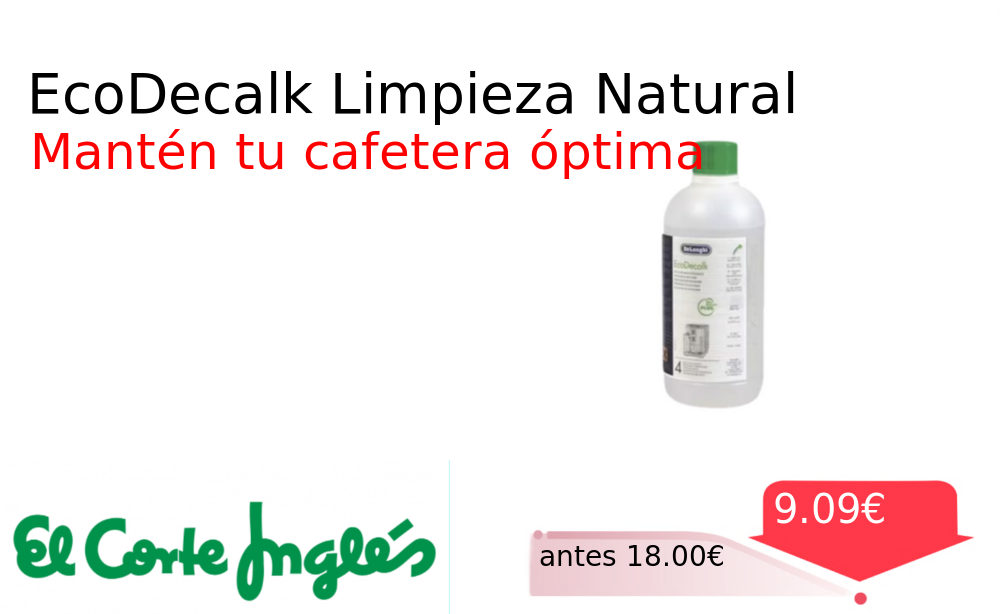 40% 📉 Vaya descuentazo‼‼ EcoDecalk Limpieza Natural❗️🆕 #Elcorteingles 📛Precio Ya 9.09€❗️ (PVP: +18.00€) ✨Descalcificante ecológico para cafeteras De'Longhi Elimina cal y mantiene tu máquina funcionando perfectamente alargando su vida útil con diseno innovador y funcional. cholloya.com/DELONGHI_ECODEC