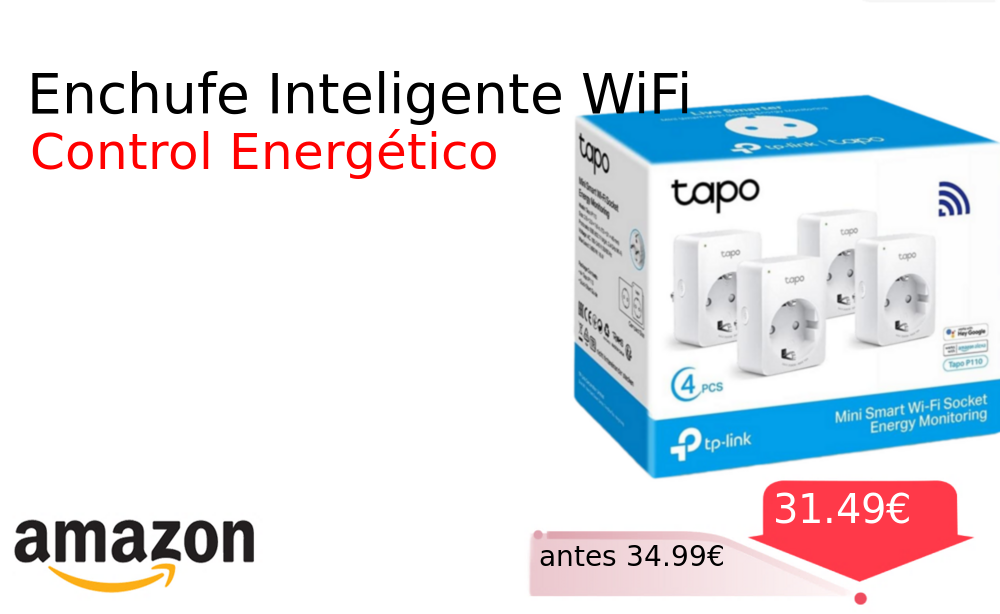 Buen Precio✨ Enchufe Inteligente WiFi❗️🆕 #Amazon 🇪🇸 📛Precio Ya 31.49€❗️ (PVP: +34.99€) ✨Controla electrodomésticos desde tu móvil con este enchufe inteligente Programa horarios y monitoriza consumo energético para mayor eficiencia doméstica con tecnologia de imagen avanzada. cholloya.com/TAPO_P110_PACK