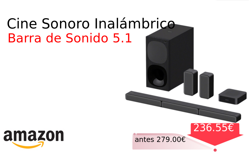 Buen Precio✨ Cine Sonoro Inalámbrico❗️🆕 #Amazon 🇪🇸 📛Precio Ya 236.55€❗️ (PVP: +279.00€) ✨Disfruta de un cine en casa con sonido envolvente real 5 1 Altavoces traseros inalámbricos y potencia total para una experiencia cinematográfica inmersiva. cholloya.com/BARRA_SONIDO_5_