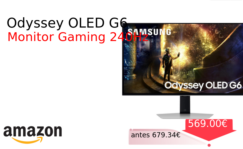 Buen Precio✨ Odyssey OLED G6❗️🆕 #Amazon 🇪🇸 📛Precio Ya 569.00€❗️ (PVP: +679.34€) ✨Rendimiento visual absoluto para gaming Pantalla OLED con resolución 1440p tasa de refresco de 240Hz y tiempo de respuesta ultrarrápido Tecnología Glare Free. cholloya.com/OLED_G6_GAMING