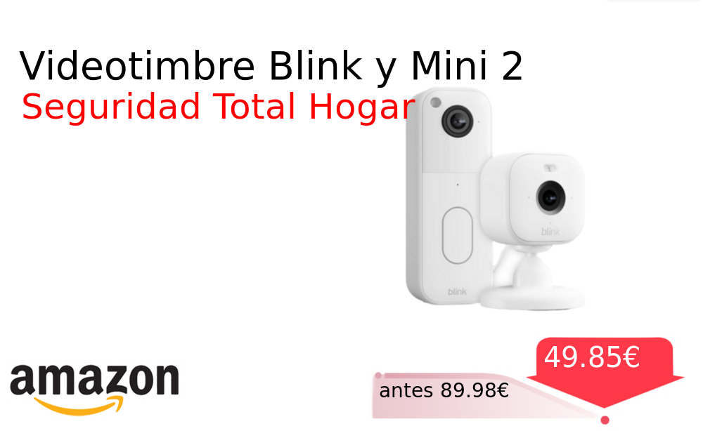 40% 📉 Vaya descuentazo‼‼ Videotimbre Blink y Mini 2❗️🆕 #Amazon 🇪🇸 📛Precio Ya 49.85€❗️ (PVP: +89.98€) ✨Sistema de videotimbre con cámara interior en blanco Vídeo HD completo resistencia climática y fácil instalación Funciona con asistente de voz incluido. cholloya.com/BLINK_VIDEOTIMB