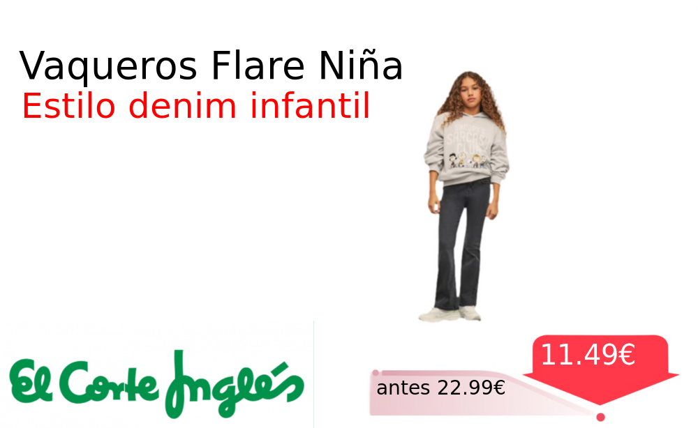 Mitad de precio✂️ Vaqueros Flare Niña❗️🆕 #Elcorteingles 📛Precio Ya 11.49€❗️ (PVP: +22.99€) ✨Pantalón vaquero con corte flare para niñas ideal para un look casual y cómodo Diseño moderno en denim perfecto para el día a día. cholloya.com/KIDS_FLARE_JEAN